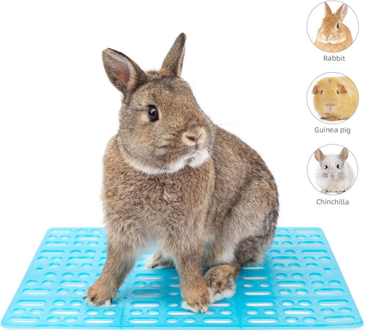 2 Pieces Rabbit Playpen Feet Mats for Cage, Comes with 4 Fixed Tabs (Blue)