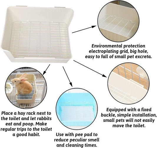 Corner Litter Box for Rabbit Cage Bunny Litter Box with Grate Square Rabbit Potty Training Litter...