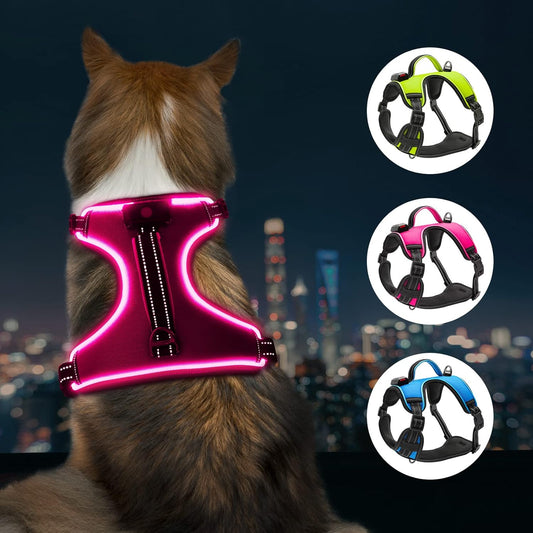 LED Dog Harness, Lighted up USB Rechargeable Pet Harness, Illuminated Reflective Glowing Dog Vest...